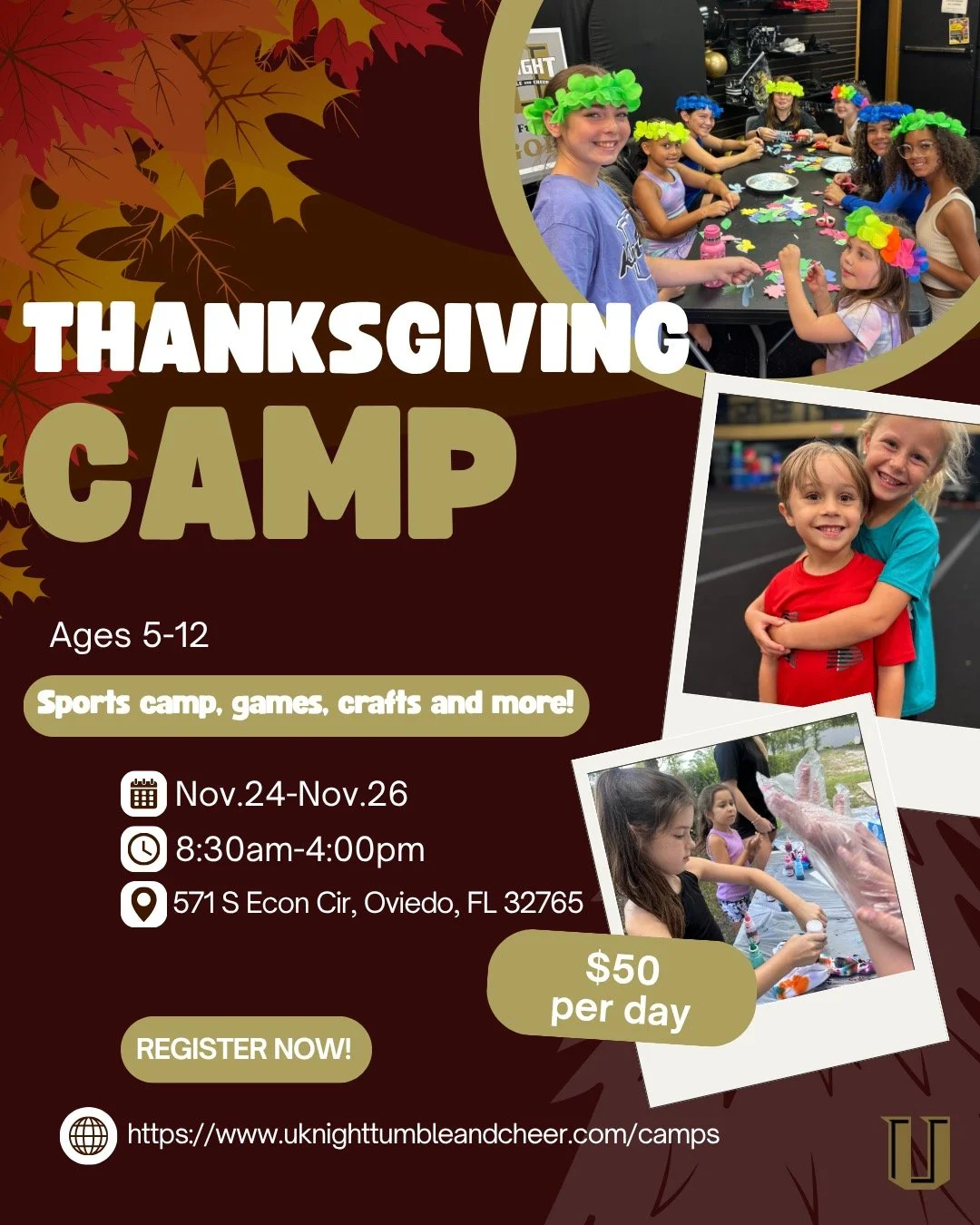 Looking for a place where the kids can have a blast this Thanksgiving break? Join us at our Thanksgiving Break Fun Camp, open to boys and girls ages 5-12. This camp is all about fun activities, crafts, games, and making new friends.